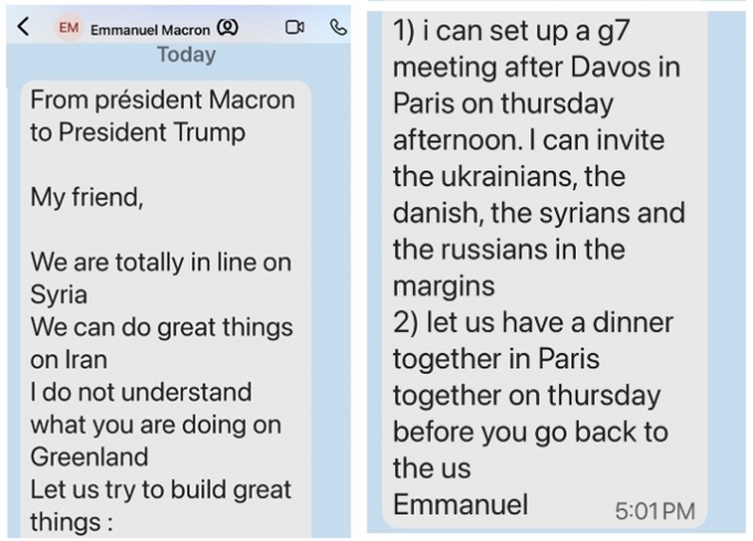 "친구야, 저녁 먹자" 마크롱, 트럼프에게 문자...그린란드 해법 찾을까?