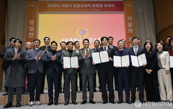 • 뉴스핌서울시 26년 유공납세자들과 기념촬영하는 오세훈 서울시장