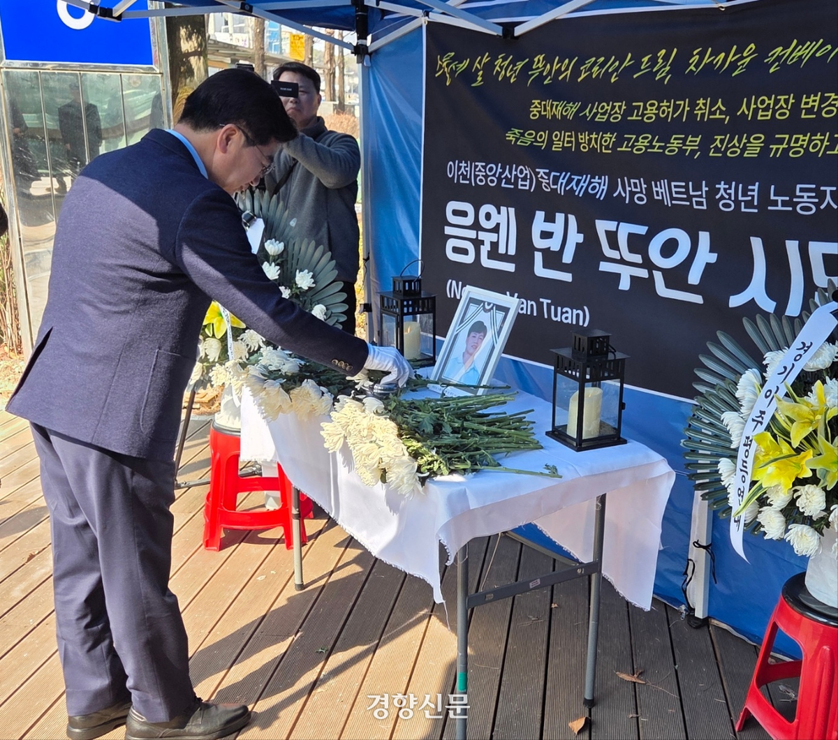 끼임사고로 숨진 뚜안 분향소 찾은 김동연···“이주노동자도 똑같은 경기도민”