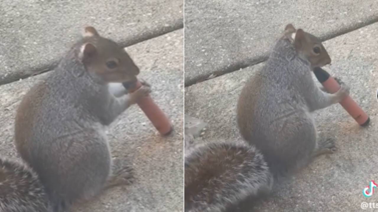 '과일향 나서'...전자담배 씹어먹는 다람쥐 공원서 포착