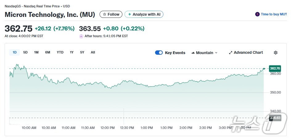 • 뉴스1미국 최대 D램 업체 마이크론 또 8% 폭등
