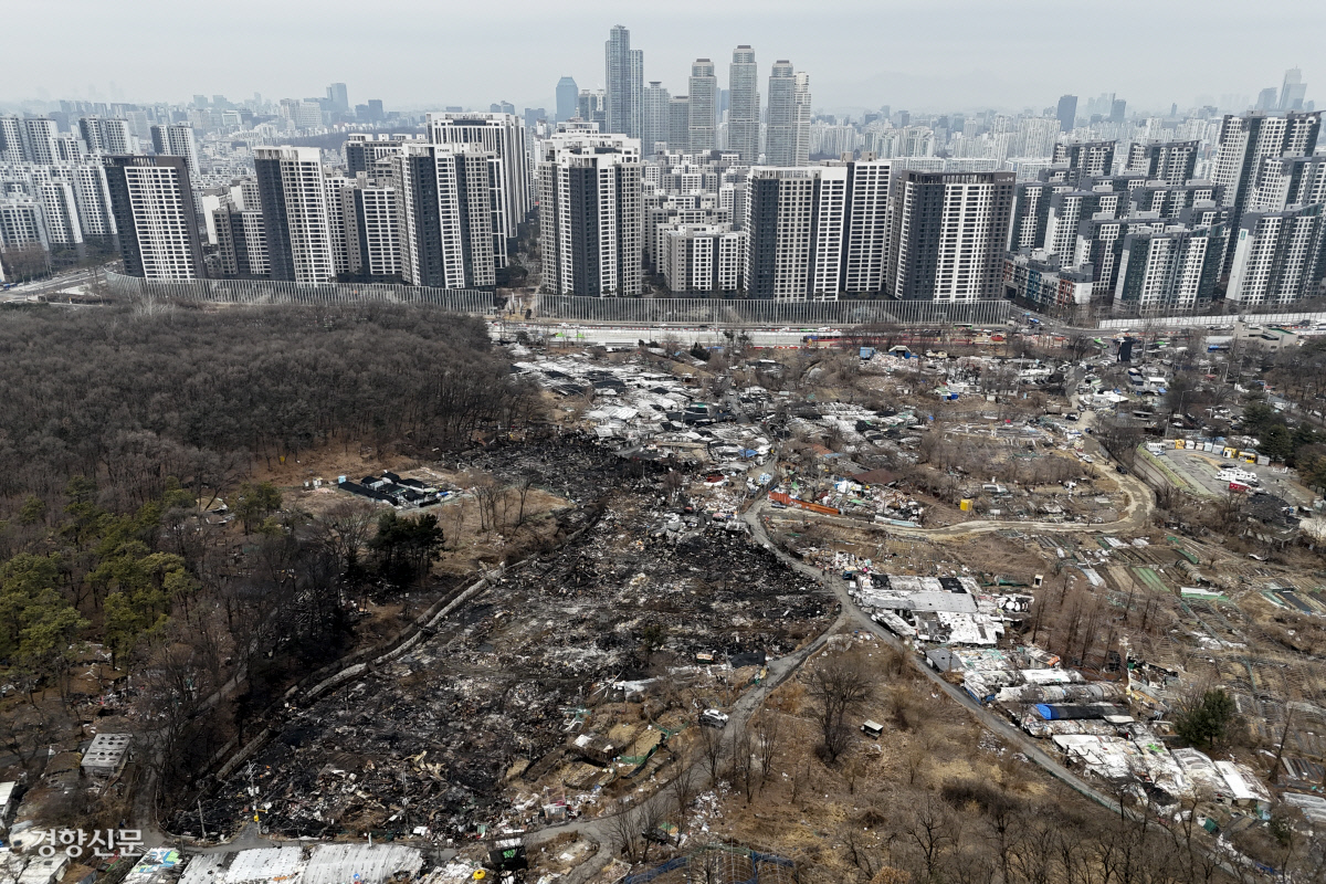 ‘화마’ 휩쓸고 간 구룡마을 뒤로…멀게만 보이는 타워팰리스
