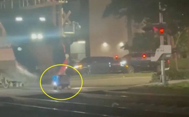 “살려줘”…철길 갇힌 ‘배달 로봇’ 기차와 충돌 산산조각