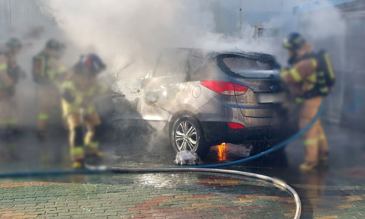 초등학교 주차장에 세워져 있던 SUV 내부서 부탄가스 폭발