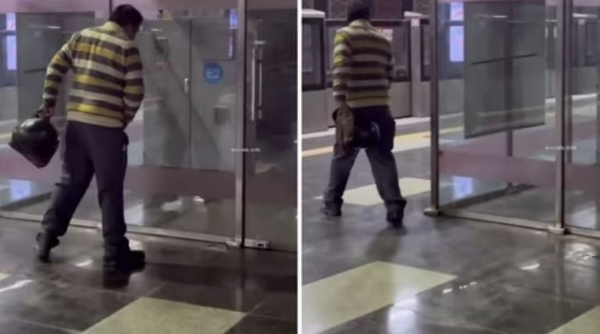 인도 지하철 유리창 앞 ‘이것’ 하다 들켜…엉거주춤 남성 ‘줄행랑’ 포착