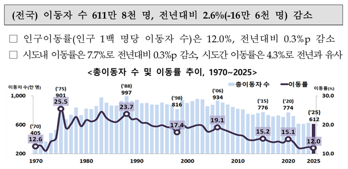 • 전자신문국내 인구 이동 51년 만에 최저…고령화에 이동마저 멈췄다