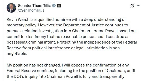 • 뉴스핌미 공화 의원 "파월 수사 종결 전까진 워시 인준 불가"