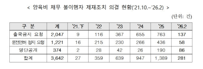 양육비 안 준 '나쁜 부모' 239명 제재…출국금지·면허정지 등 281건