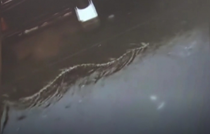 트라우마에 '비명'...폭우에 잠긴 발리 한복판 '대형 비단뱀'