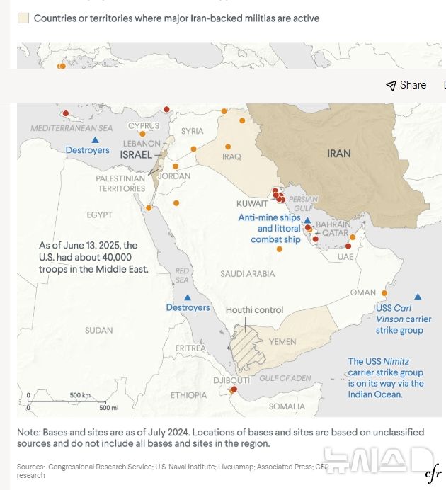 • 뉴시스美, 중동서 19개 군기지 운영…역내 갈등 때마다 보복 표적
