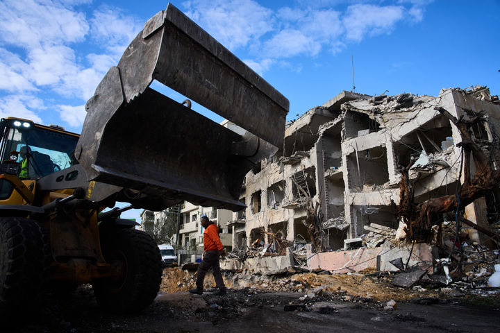 미사일 피해 현장 복구하는 이스라엘 구조대