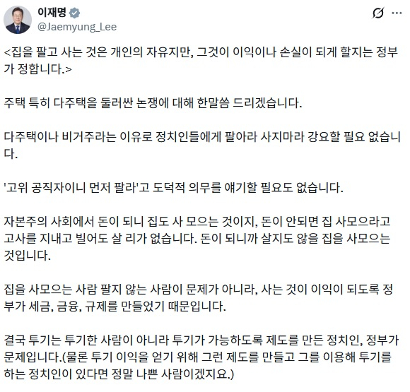 • 쿠키뉴스李대통령 “집 거래 자유지만 이익은 정부가 결정”