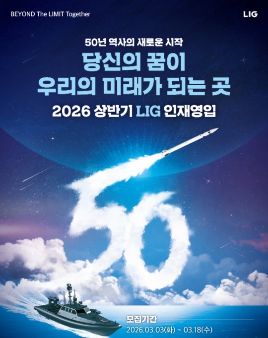 • 한국금융신문LIG넥스원, 2026년 상반기 대규모 공채 실시…K-방산 주도할 세 자릿수 인재 찾는다