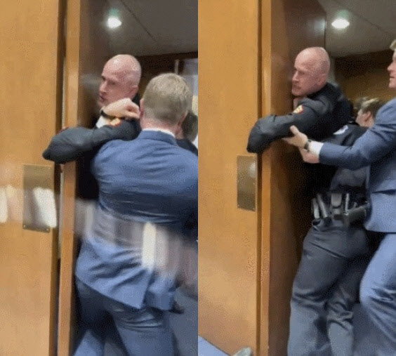 “우리 아들 왜 죽어야해” 美의원과 ‘몸싸움’…끌려 나간 전 해병대원