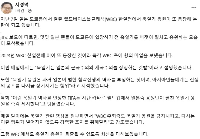 • 헤럴드경제“WBC 한일전, ‘욱일기’ 펼치고 버젓이 응원”…논란 장면 포착됐다