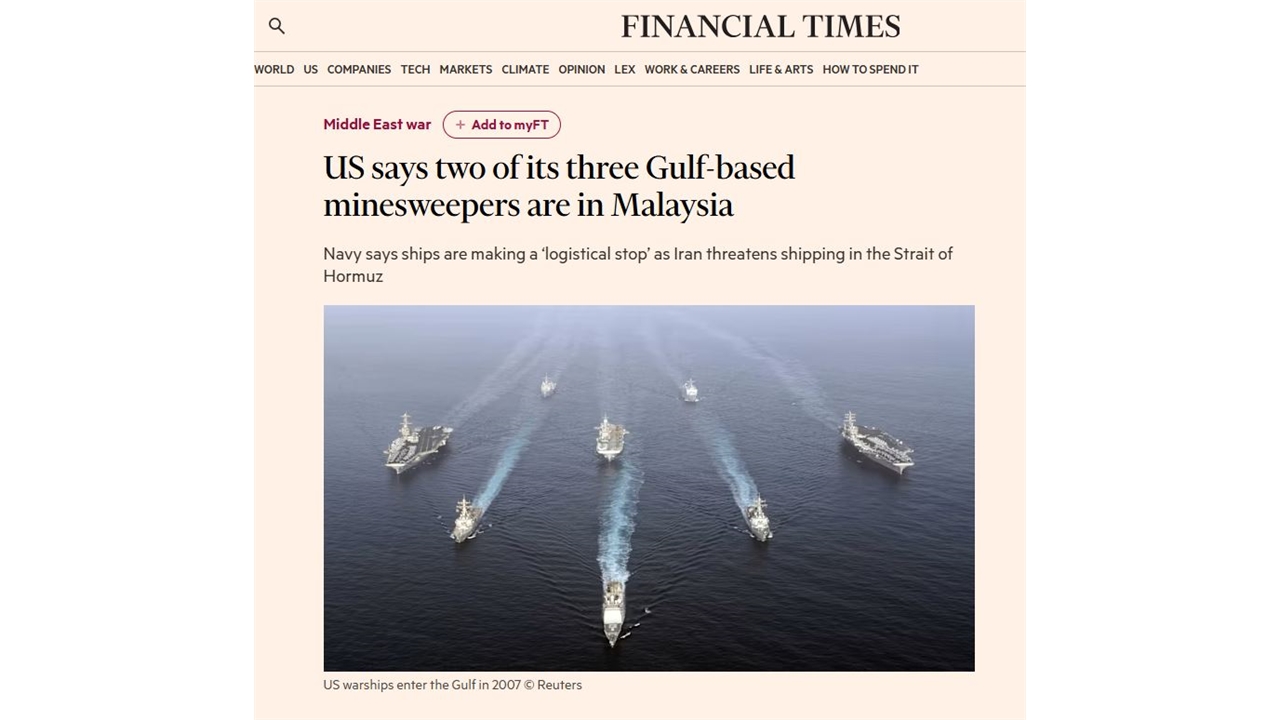 걸프 배치 미군 기뢰제거함들 수천㎞ 밖 정박...위험해서?