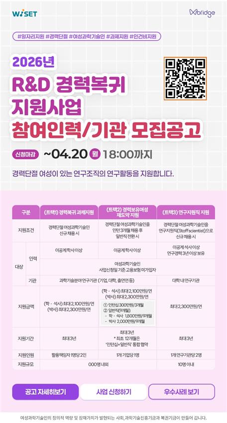 • 연합뉴스여성과기인 R&D 경력복귀 지원사업 모집…연구지원직 유형 신설