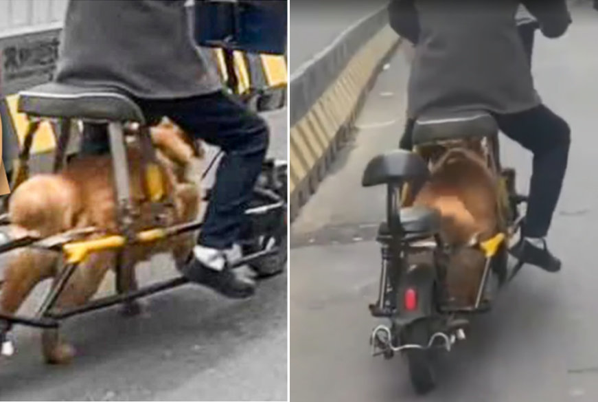 “개 엔진?” 자전거 개조해 반려견으로 동력…中동물학대 논란