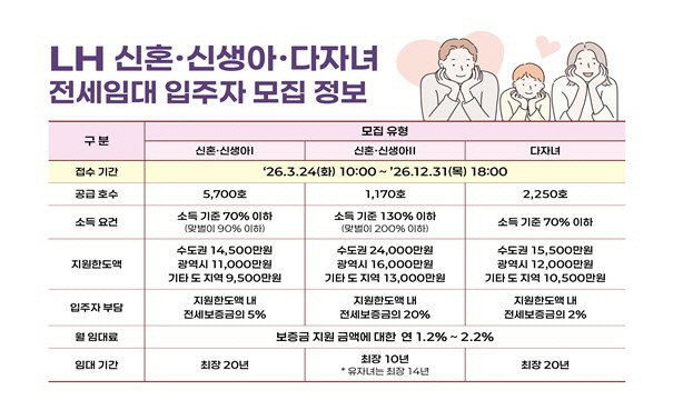 • 아시아투데이LH, 신혼·신생아·다자녀 전세임대주택 입주자 9120가구 상시 모집