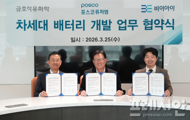 포스코퓨처엠-금호석유화학-BEI, 차세대 고성능 배터리 공동개발 약속