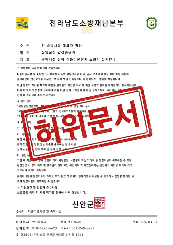 • 문화뉴스전남 신안서, '소방기관 사칭 소방용품 강매 시도' 주의보